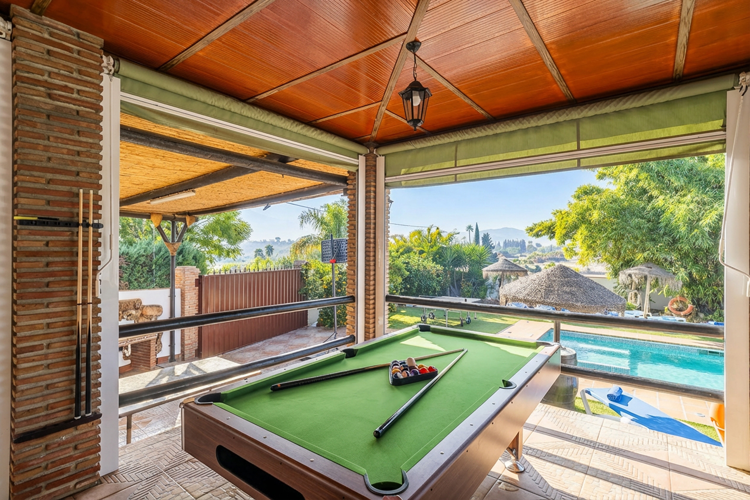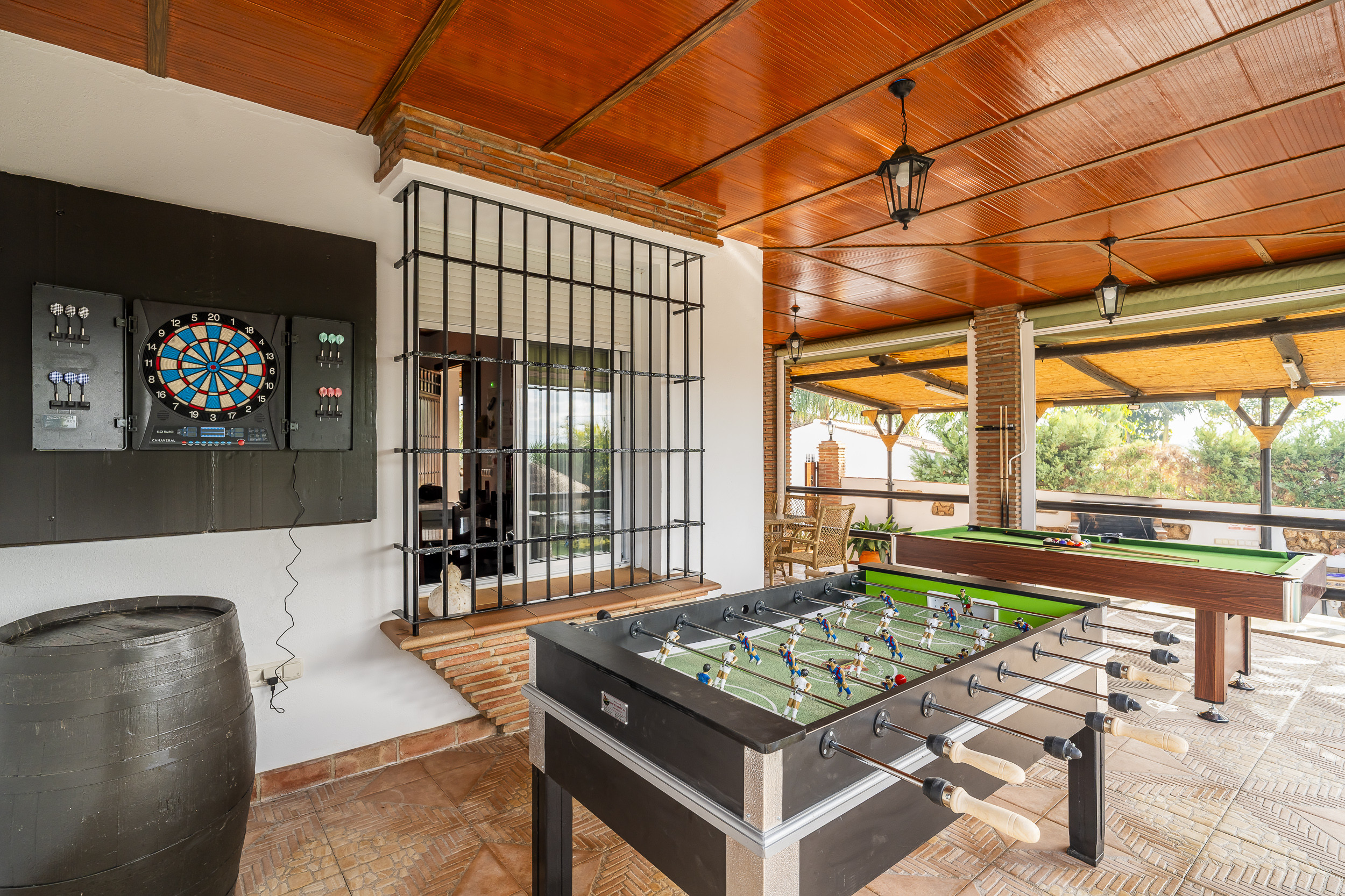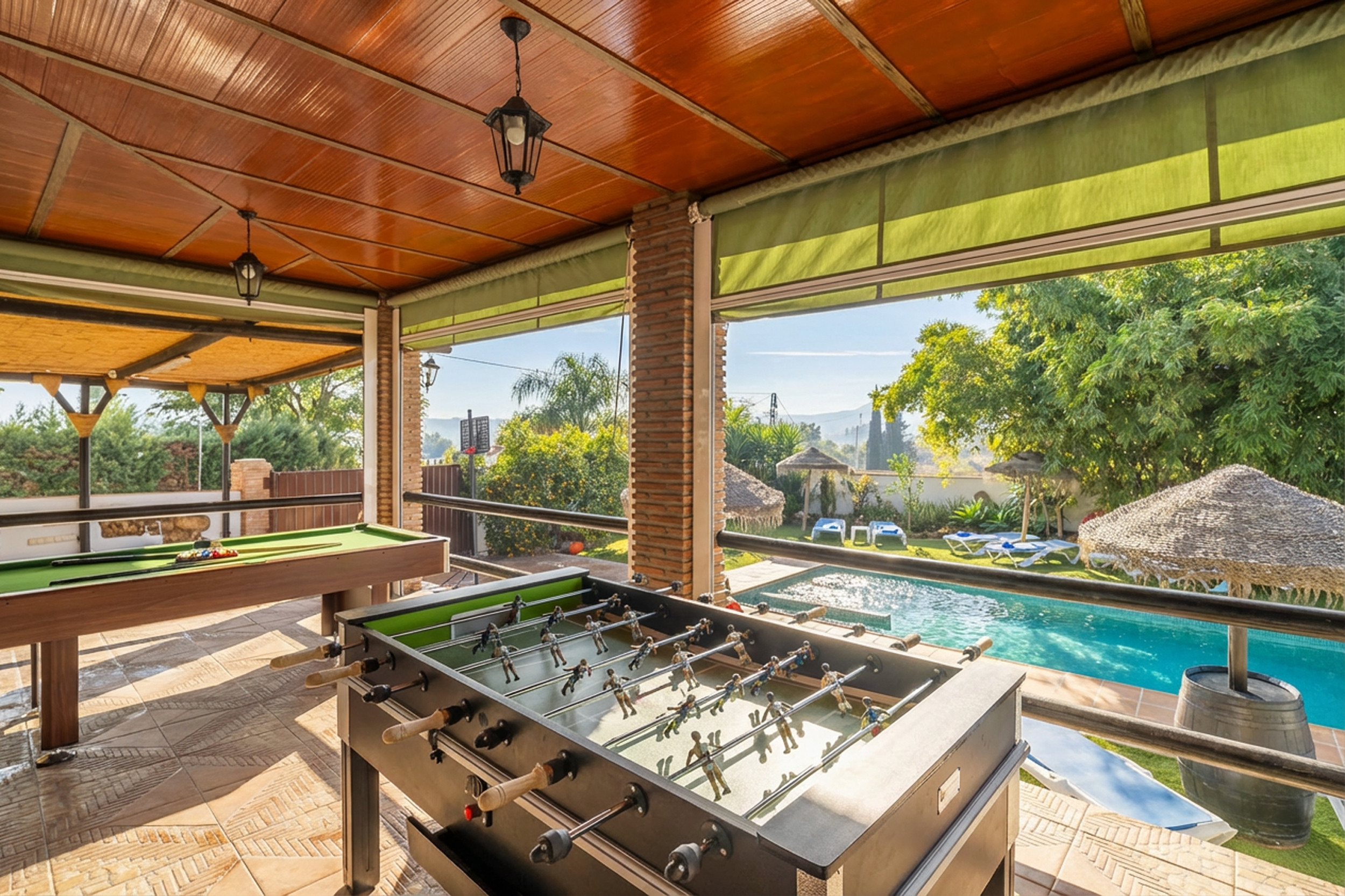 En el exterior, encontrarás una espectacular terraza de 80m2 preparada para el invierno y con vistas panorámicas, perfecta para relajarte bajo el sol o para los días de invierno y así disfrutar de la tranquilidad del entorno. Se ofrecen numerosas actividades deportivas como mesa de billar, mesa de ping-pong, dardos, futbolín y canasta de baloncesto.