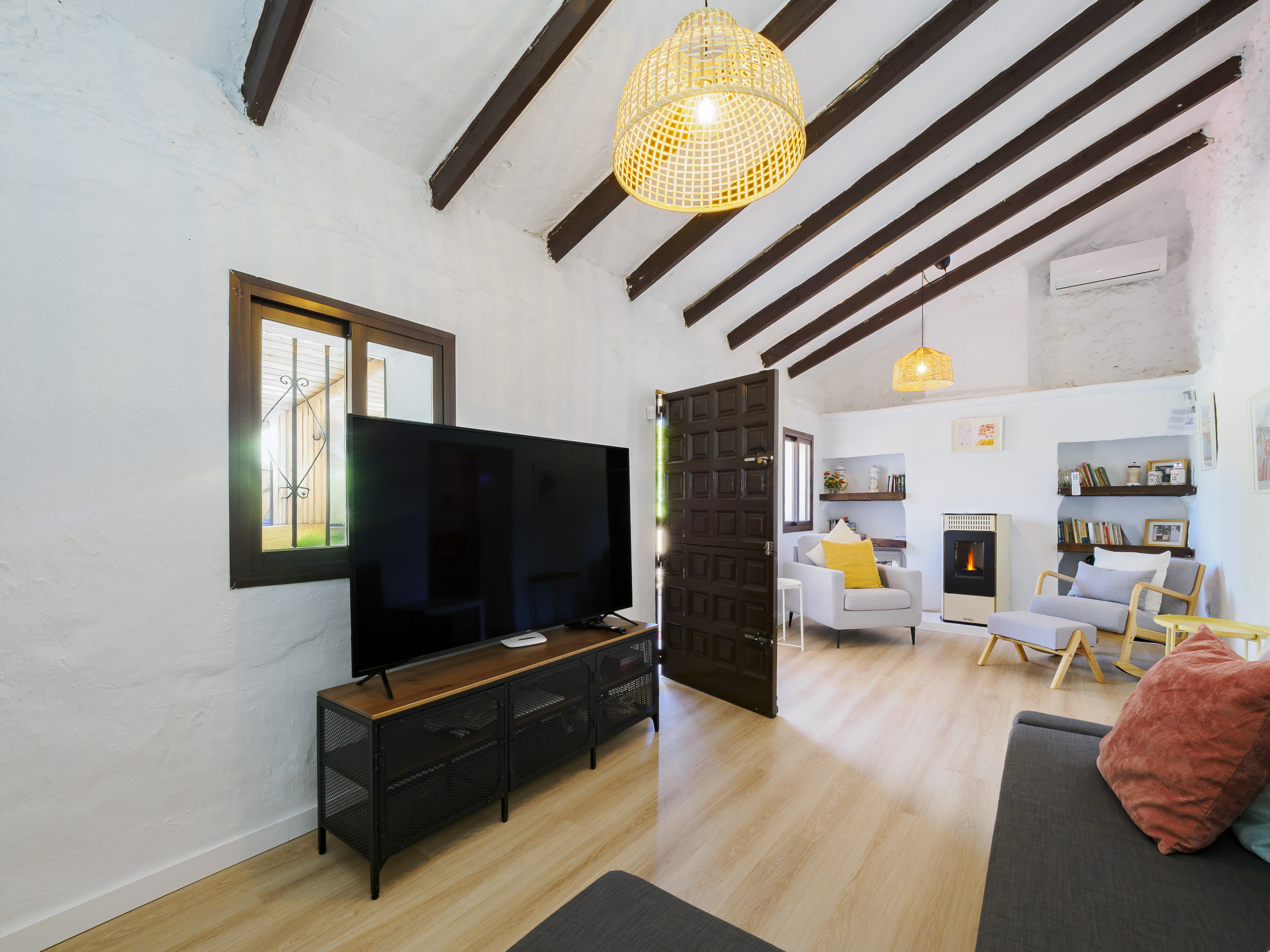 This charming 110 m² farmhouse in Alhaurín el Grande offers a comfortable space for up to 7 people, with two bedrooms: one with a double bed and another with three single beds. Enjoy its American kitchen equipped with ceramic hob, refrigerator, microwave, oven, freezer, washing machine, dishwasher and all the necessary utensils to prepare your favourite meals 🍳🍽️. The living room is cosy and has air conditioning and heating to ensure your comfort in any season. Additionally, you can relax watching your favourite series with Netflix connection and satellite television in English 📺🍿.